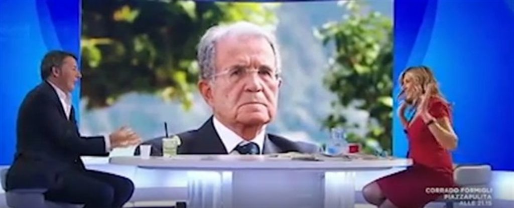Renzi in studio appare infastidito e allora senza tener conto di chi è Romano Prodi, della sua storia, del fatto che è stato per due volte presidente del Consiglio e candidato alla crica di Presidente della Repubblica ha risposto: “Prodi è l’ultimo a poter parlare di cibo e politica, visto che lo chiamano il Mortadella”.