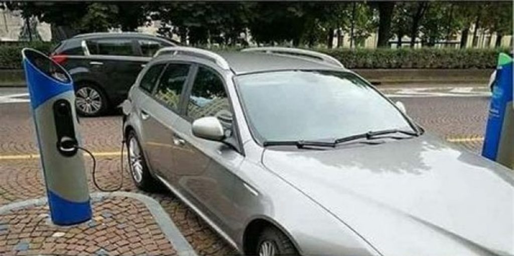 Insomma, il proprietario si è inventano una finta sosta alla fermata elettrica appoggiando il cavo della ricarica allo sportellino del carburante per giustificare la sosta e quindi non pagare il ticket.