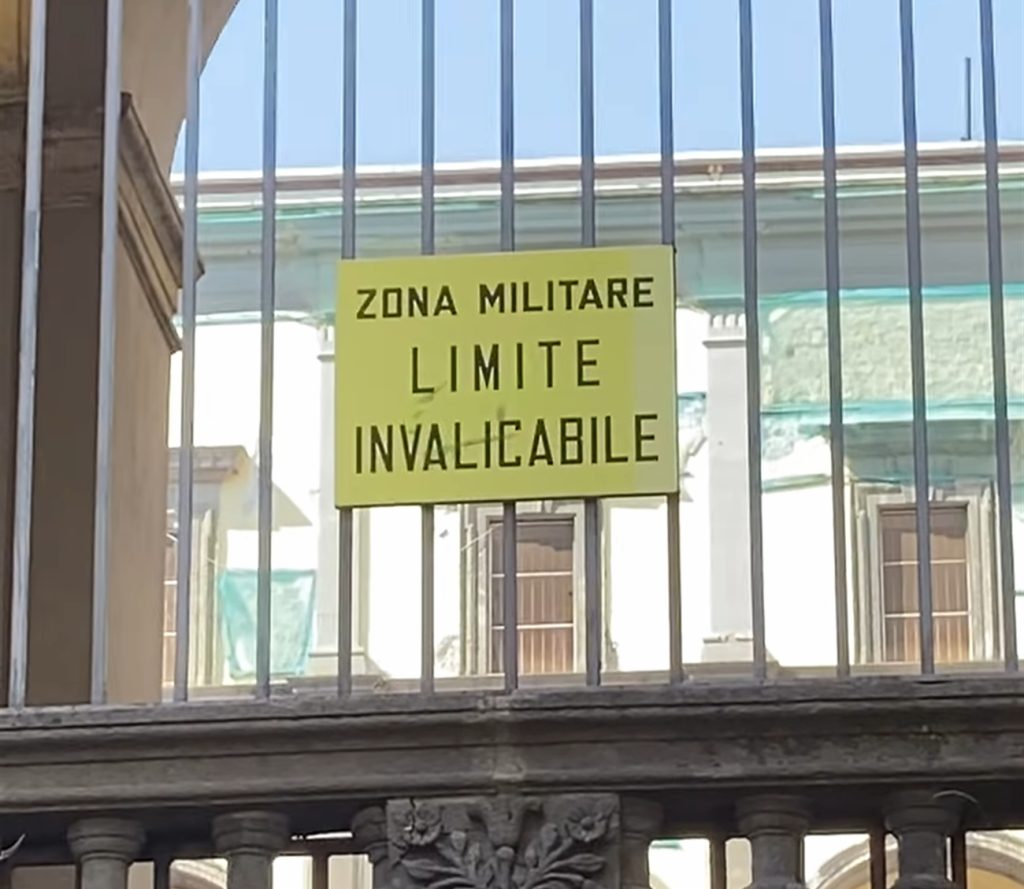 Quell’ingresso del Chiostro di Monteoliveto è ‘zona militare’ infatti parte del complesso cinquecentesco è in dotazione ai carabinieri della caserma Pastrengo.