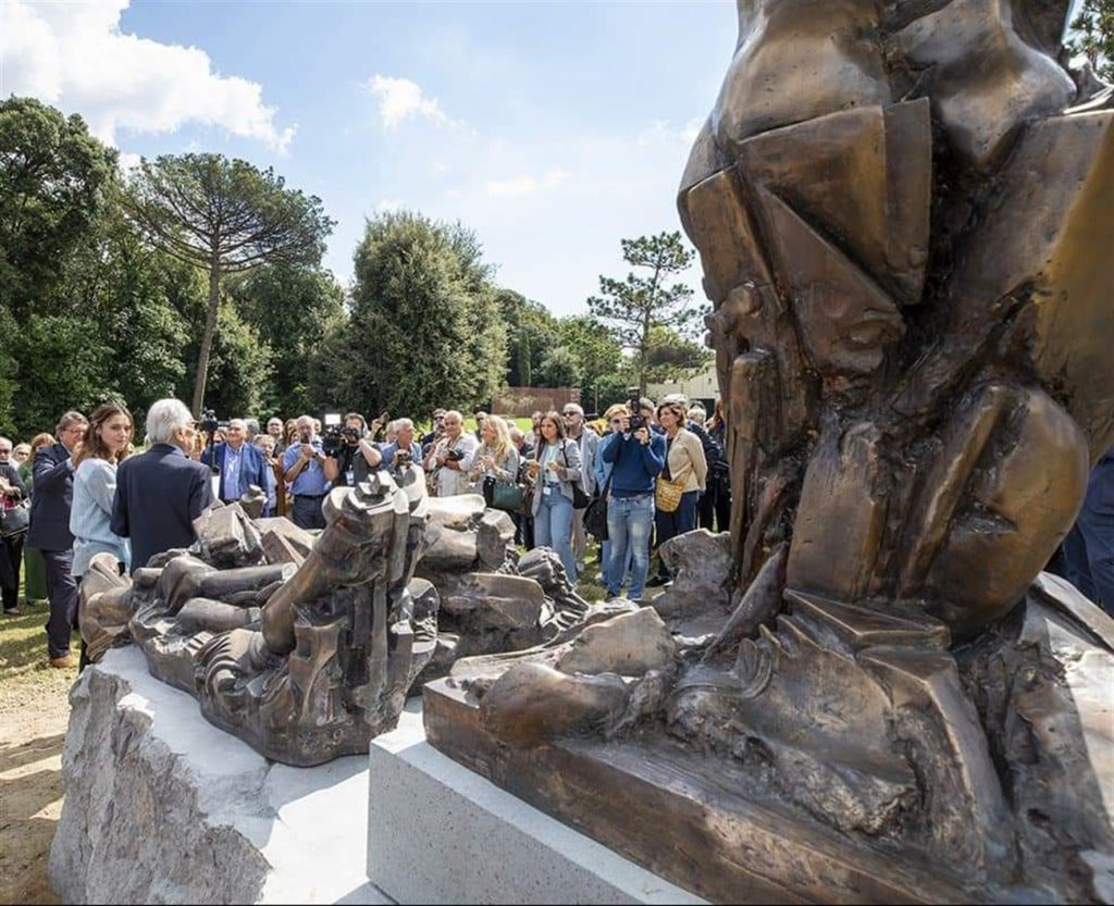 Svelato inoltre il dittico monumentale di sculture in bronzo, La fisicità che si scioglie nell’amplesso con l’anima / Due corpi riflessi nell’onda infranta, che adornerà il Real Bosco in maniera permanente.