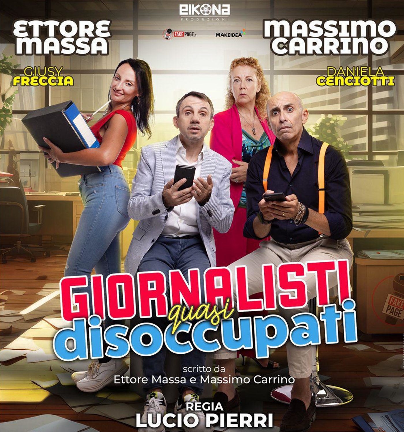 “FakePage – Giornalisti quasi disoccupati” è una redazione giornalistica di provincia sull’orlo del fallimento. Per salvare il posto di lavoro, i giornalisti si reinventano come creatori di fake news, interpretando loro stessi i diversi personaggi delle loro storie. Una commedia che riflette in modo ironico sull’ossessione per i social media e sulla difficoltà di distinguere la verità dalla finzione nell’era dell’informazione.