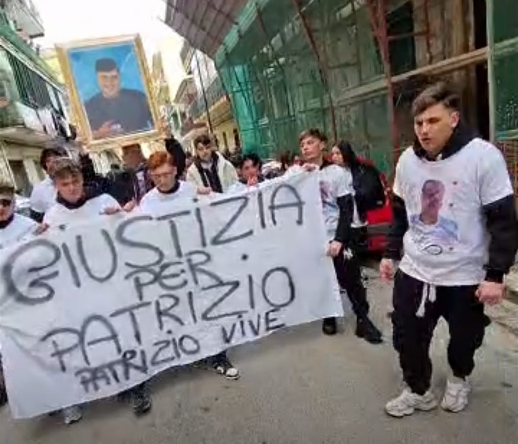 Un corteo di giovani in scooter e moto e cori in cui si chiedeva “giustizia per Patrizio” hanno accompagnato l’arrivo della bara bianca nella Chiesa Cristo Re, al rione Berlingieri di Secondigliano. Sulla bara bianca è stata appoggiata la maglietta numero 11 dell’attaccante Lukaku.