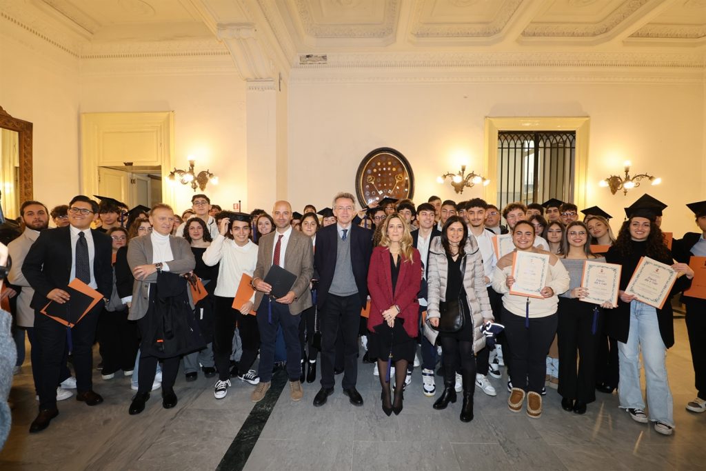 L’iniziativa “NapoliCENTOELODE” è stata istituita nei mesi scorsi dalla Giunta comunale su proposta dell’assessora alle Politiche giovanili e al Lavoro Chiara Marciani, che ha consegnato ai premiati anche un diploma e il tocco di laurea. All’incontro sono intervenuti i presidenti delle Commissioni consiliari Politiche sociali, Massimo Cilenti, e Bilancio, Walter Savarese d’Atri, e la dirigente scolastica Nunzia Galdi dell’Ufficio scolastico regionale.