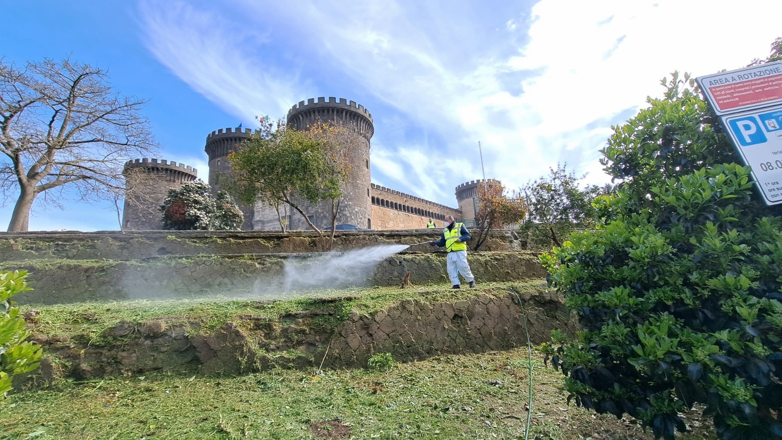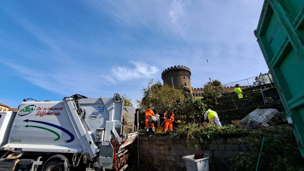 Oltre venti persone tra operai, tecnici, assistenti sociali e agenti della Polizia locale sono state impegnate, dall’alba di oggi, in un complesso intervento nell’area degli spalti del Maschio Angioino che ha restituito ai cittadini e ai turisti un importante spazio verde: un’area di circa 500 metri quadrati, ai piedi di uno dei più prestigiosi monumenti cittadini, da tempo occupata da persone senza fissa dimora e da cumuli di rifiuti di ogni genere.