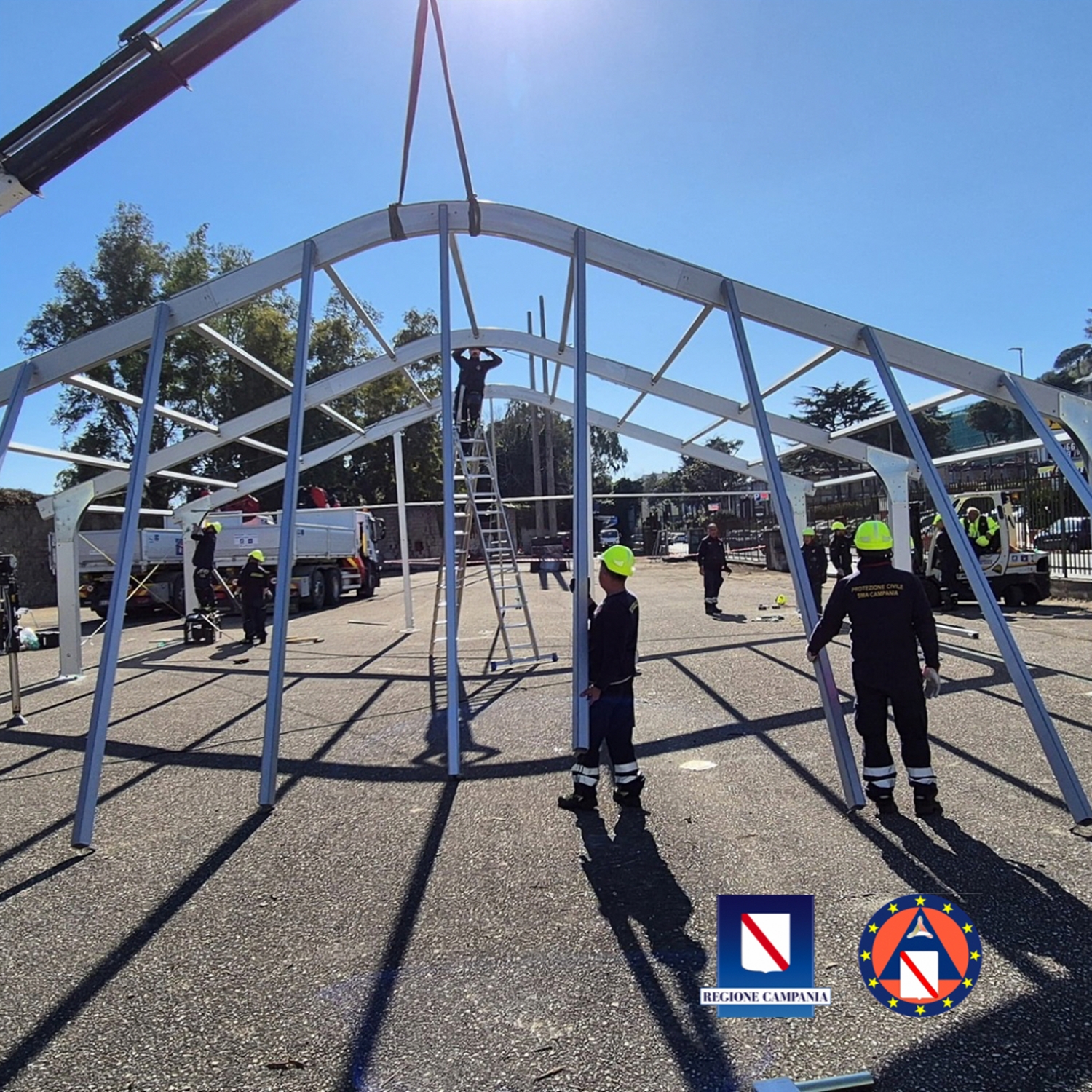 La Regione Campania dopo aver allestito l’area di Attesa nell’ex Base NATO di Bagnoli, nella giornata di oggi sta realizzando, su richiesta del Comune di Napoli, una nuova tendostruttura, in via Terracina (di fronte all’ospedale San Paolo), che sarà destinata ad Area di Accoglienza. Il padiglione, di 180 metri quadri, potrà ospitare circa 50 lettini. Da questa mattina la Protezione Civile della Regione Campania è al lavoro, grazie anche all’ausilio di 30 unità di personale della SMA Campania.
