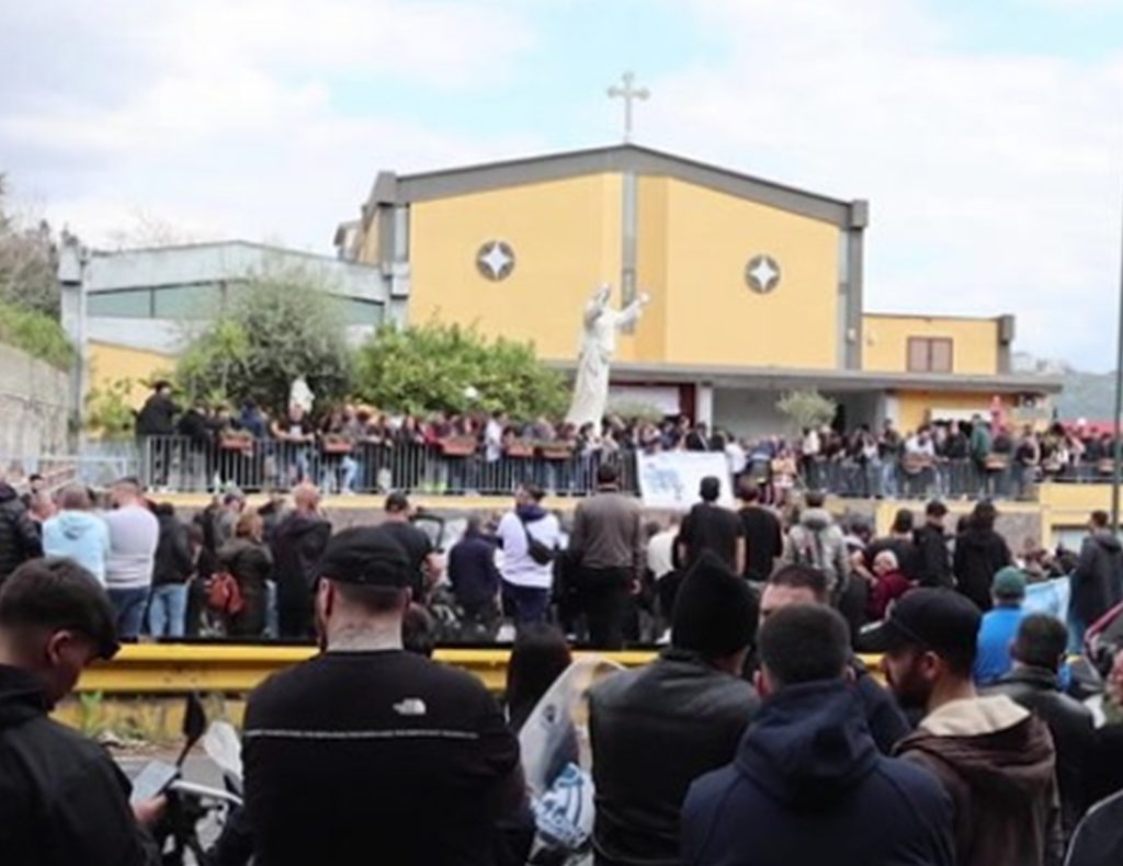 I molti che non sono riusci a trovare posto nella Chiesa di San Giuseppe di Agnano si sono assiepati davanti alla parocchia e nella strada circostante mandando in tilt la circolazione veicolare. Una bolgia a cui hanno partecipato i tifosi del gruppo Ultras della Curva A e anche gli Ultras della Curva B che hanno esposto all’esterno della Chiesa uno striscione bianco e azzurro con la scritta ‘Ciao Diego’.