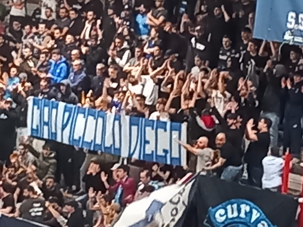 E proprio il Napoli calcio ha donato lo stendardo con lo stemma della SSC Napoli e prima dell’incontro con il Milan, domenica sera, ha reso omaggio al piccolo Diego con un mazzo di fiori deposto dal capitano degli azzurri. Stessa scena al Palabarbuto dove i tifosi del Napoli Basket, lunedì sera, prima della partita con Milano hanno dedicato al 14enne lo striscione: “Ciao piccolo Diego”.