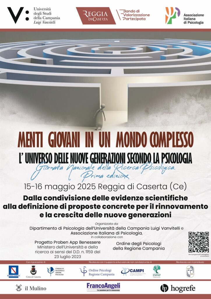 Menti giovani in un mondo complesso. È questo il titolo della due giorni organizzata dall’Associazione italiana di psicologia (Aip) e dal dipartimento di Psicologia dell’Università della Campania ‘Luigi Vanvitelli’, in collaborazione con l’Ordine degli Psicologi della Campania. Il 15 e il 16 maggio, alla Reggia di Caserta, gli accademici dei principali atenei italiani si confronteranno tra di loro e con esponenti delle istituzioni e della società civile, stakeholder e studenti sulla condizione giovanile.