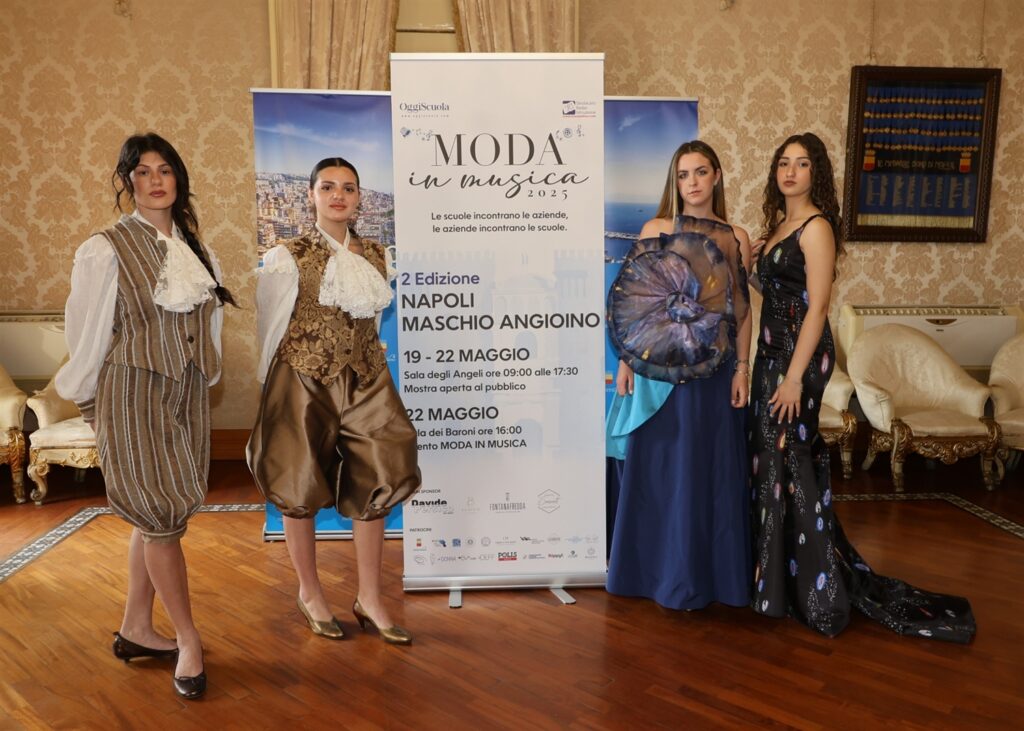 Giovedì 22 maggio alle ore 16,00 presso la Sala dei Baroni avrà luogo la sfilata , l’evento clou di “Moda in Musica” a cui parteciperanno l’IS “Bernini De Sanctis” di Napoli, l’IIS “San Benedetto” di Cassino e l’ISIS, l “Isabella d’Este Caracciolo” di Napoli e il corso di fashion design dell’Accademia di Belle Arti di Napoli coordinato dalla prof.ssa Maddalena Marciano. La sfilata dell’Accademia di Belle arti è organizzata dalla prof.ssa Franca Corrado Docente di Fashion design in collaborazione con i docenti Angelina Terzo (docente di Couture) e Kriss Barone (docente di Fashion Styling e trucco”. Sfilerà EVALAB, in mostra gli abiti d’alta moda di Bencivenga, gli accessori di Ledeff e le calzature di Michelle Morelli della designer Carolina Cuomo.