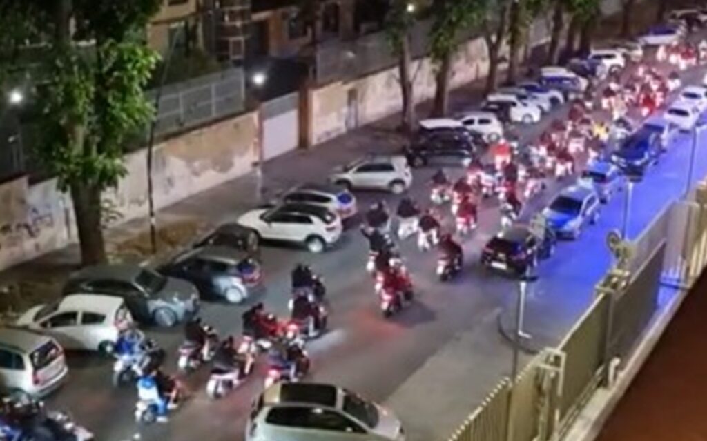 Un appuntamento organizzato nei minimi particolari con migliaia di scooter, moto che all’ora fissata si sono presentati in massa nei pressi dell’albergo a Fuorigrotta.