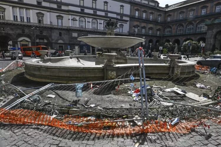 Danneggiata, infine, a piazza Trieste e Trento la fontana del Carciofo presa d’assalto dai tifosi nonostante le reti metalliche di protezione apposte dal Comune. Divelta la ringhiera in ferro che cingeva la fontana. Già due anni fa, in occasione del precedente scudetto, i danni erano stati simili. E poi aggiustati nel giro di poche ore.