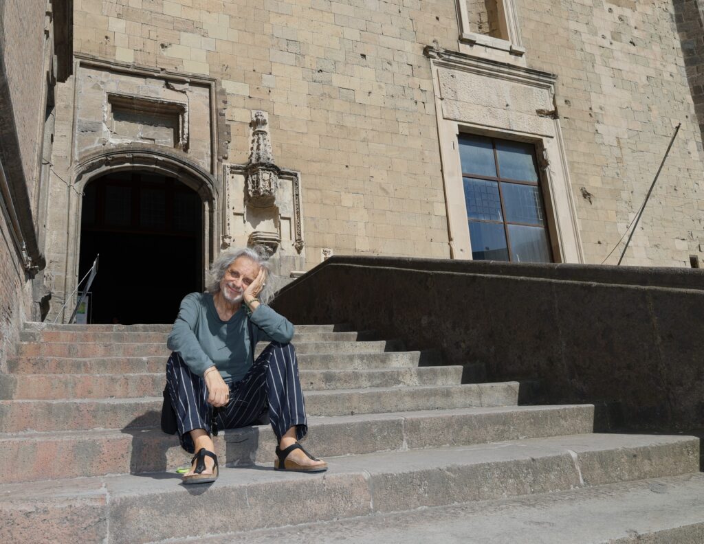 Giornata di sopralluogo a Castel Nuovo (Maschio Angioino) per Alessandro Bergonzoni, attore, performer e autore tra le voci più originali della scena culturale italiana. L’artista bolognese sarà protagonista del gran finale della rassegna “Estate a Napoli” conun trittico di spettacoli capaci di intrecciare arte, teatro e riflessione socialein programma il 12, 13 e 14 settembre negli spazi della Cappella Palatina, dell’Armeria e nel Cortile del castello.
