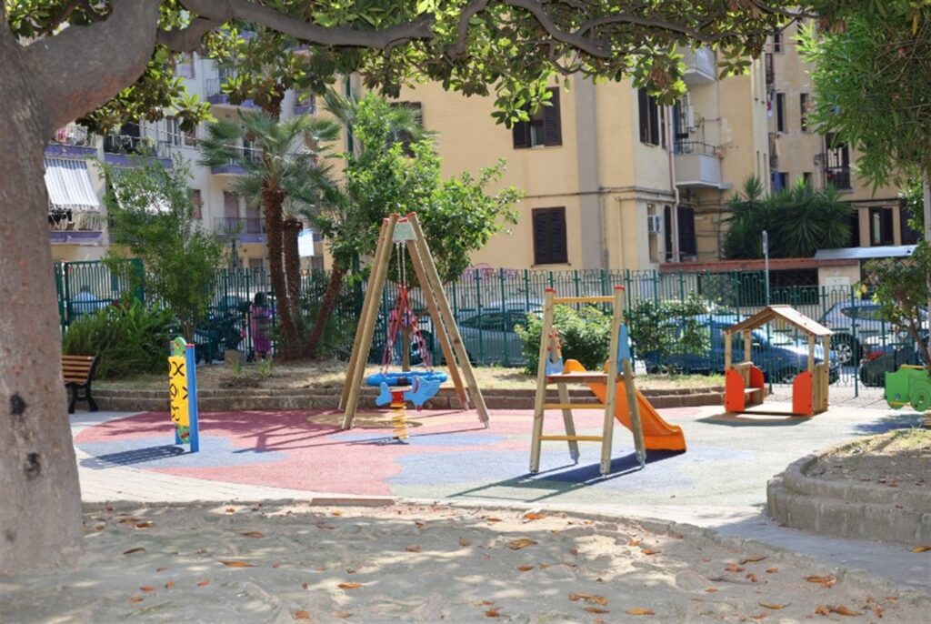 Tra i lavori eseguiti, inoltre, la revisione e verniciatura delle recinzioni perimetrali e la posa di nuovi arredi urbani, tra cui panchine, gazebo, tavoli pic-nic e cestini. Tanto per l’area giochi quanto per l’area gazebo, la progettazione ha tenuto conto del principio dell’inclusività, assicurando la piena accessibilità anche alle persone diversamente abili. Gli interventi sul verde hanno riguardato la manutenzione ordinaria e la nuova piantumazione di essenze arboree e ornamentali, restituendo decoro, vivibilità e bellezza all’intero spazio verde. Completa l’intervento un pannello informativo che richiama i principi fondamentali sanciti nella Dichiarazione Universale dei Diritti dell’Uomo.