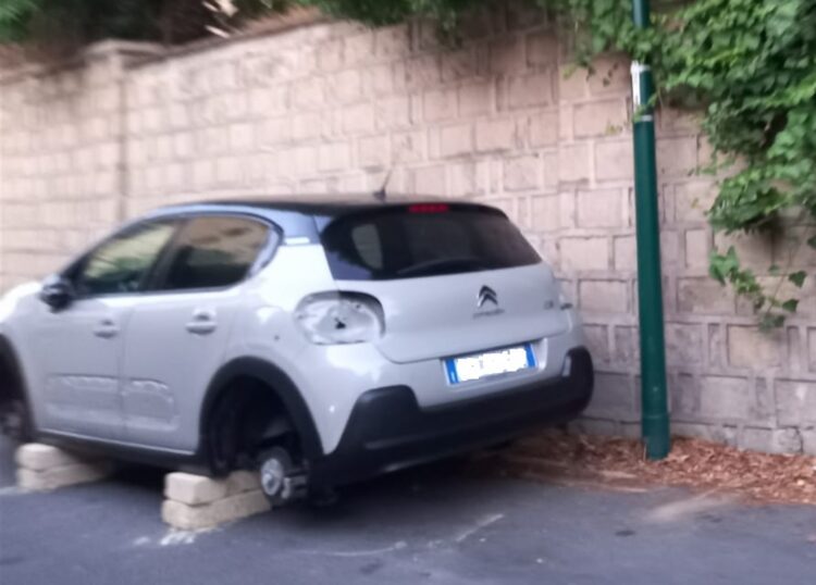 Con uno svitatore elettrico – quello delle officine – hanno smontato le due ruote, lato muro, poggiando poi – come prassi – il veicolo su due mattoni di tufo. Stesso copione dall’altro lato, fronte strada. Dopo aver caricato i pneumatici appena rubati hanno asportato anche i fari posteriori e anteriori della Citroen C3 per poi far perdere le proprie tracce a bordo di un’auto di piccola cilindrata.